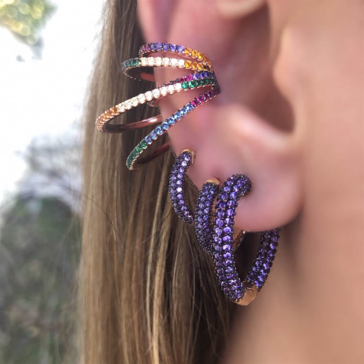 1,5 cm Mor Taş Halka Küpe (ZBSDMTHK35790)