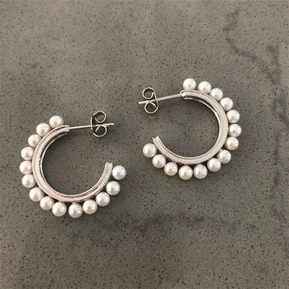 2,5 cm İnci Halka İthal Küpe Silver