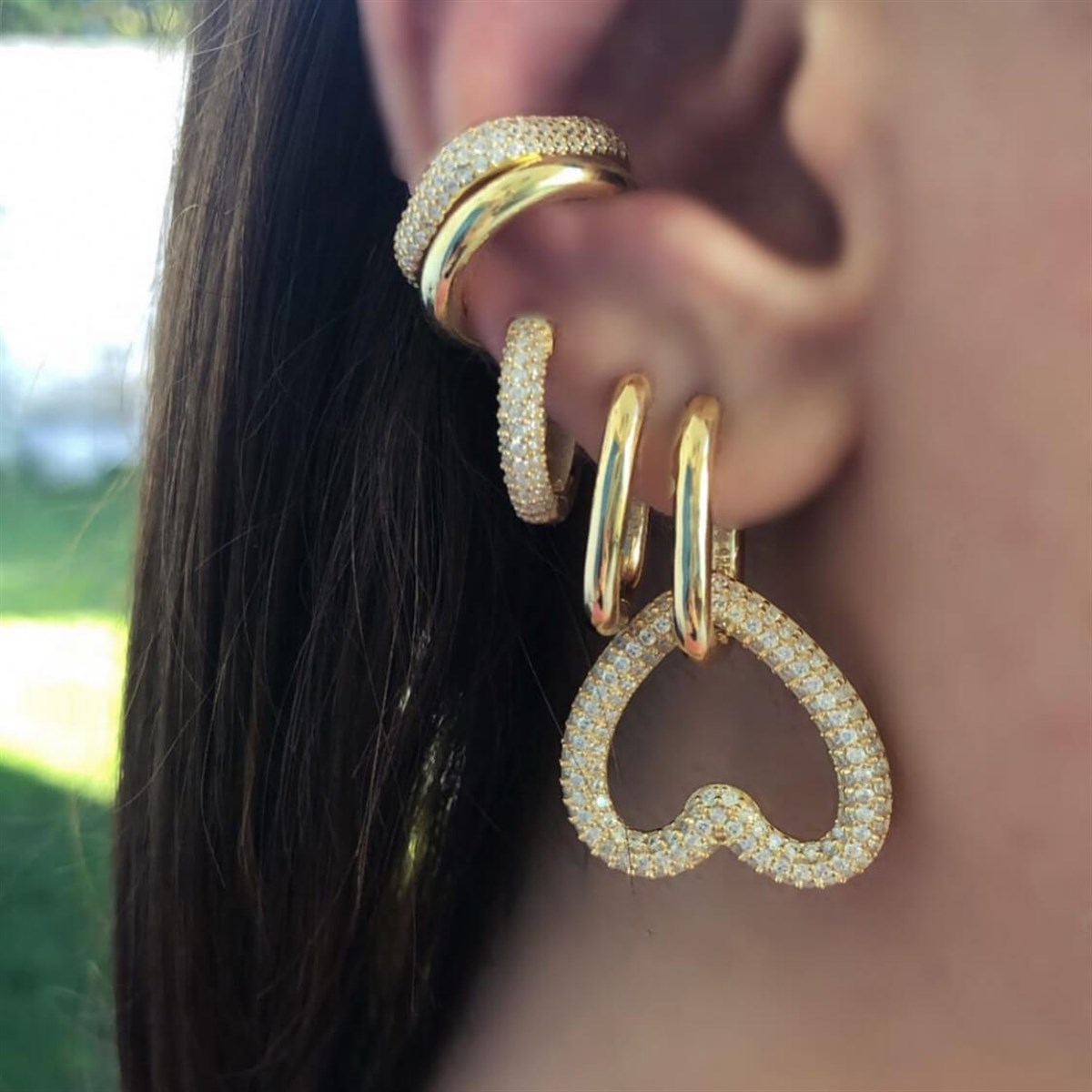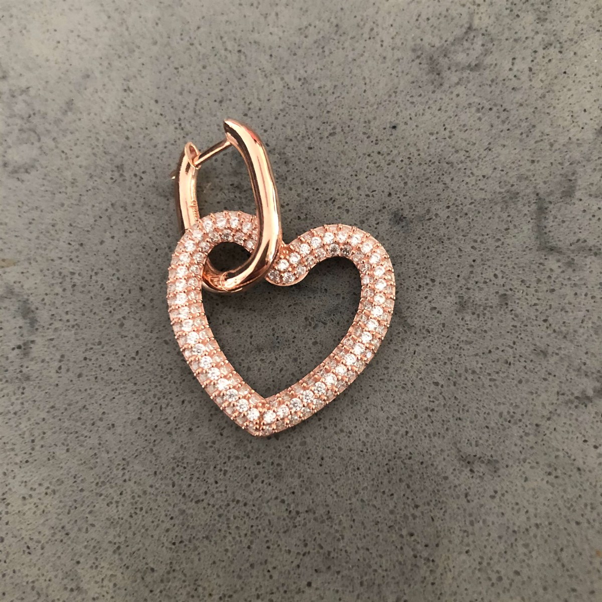 Beyaz Taş Kalp Geçmeli Oval Halka Küpe