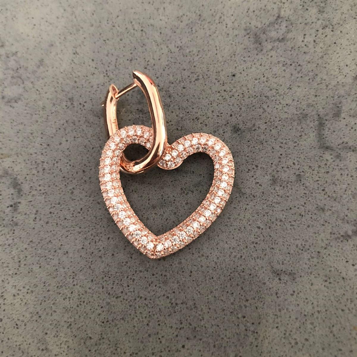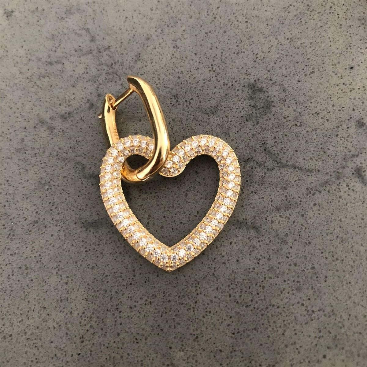 Beyaz Taş Kalp Geçmeli Oval Halka Küpe (Gold) (ZBSDBTKGOHK24679)
