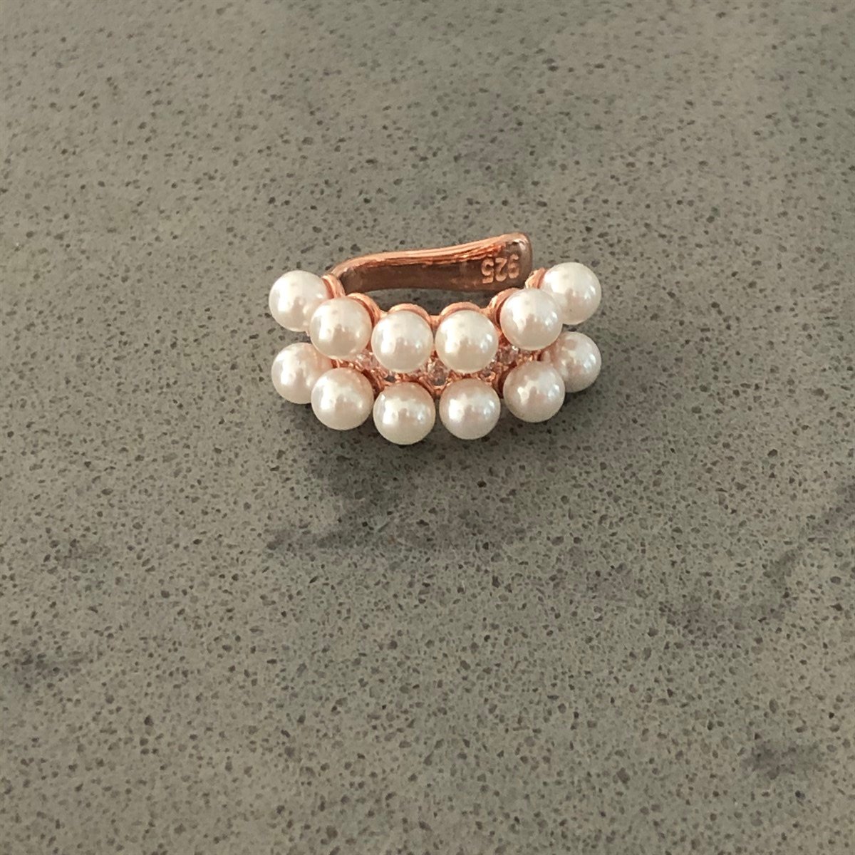 Çift Sıra İnci Ortası Taş Detay Kıkırdak Küpe (ZBSDCSIOTDKK366293930)