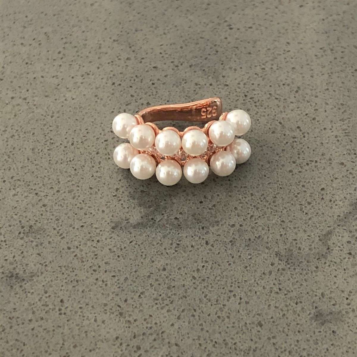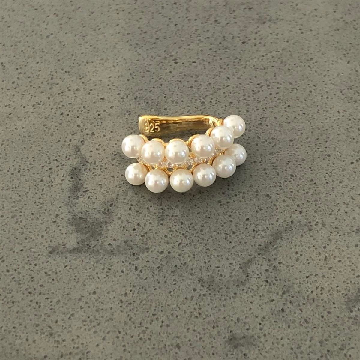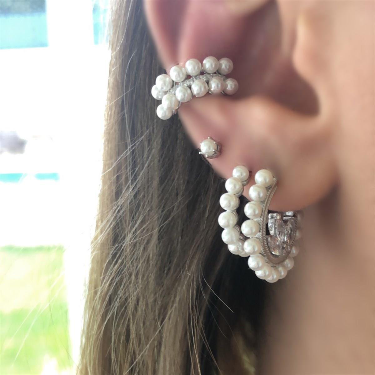 Çift Sıra İnci Ortası Taş Detay Kıkırdak Küpe (Gold)