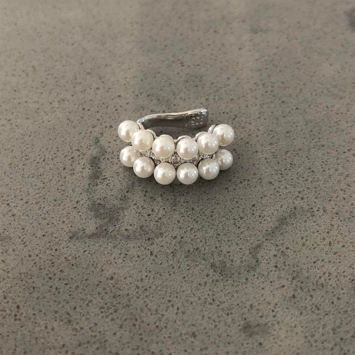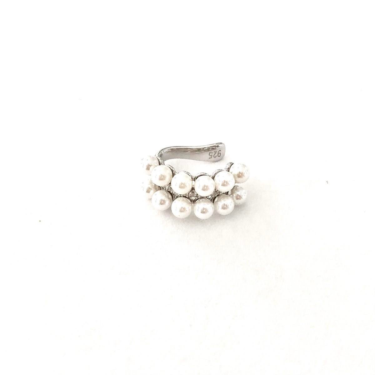 Çift Sıra İnci Ortası Taş Detay Kıkırdak Küpe (Rose)