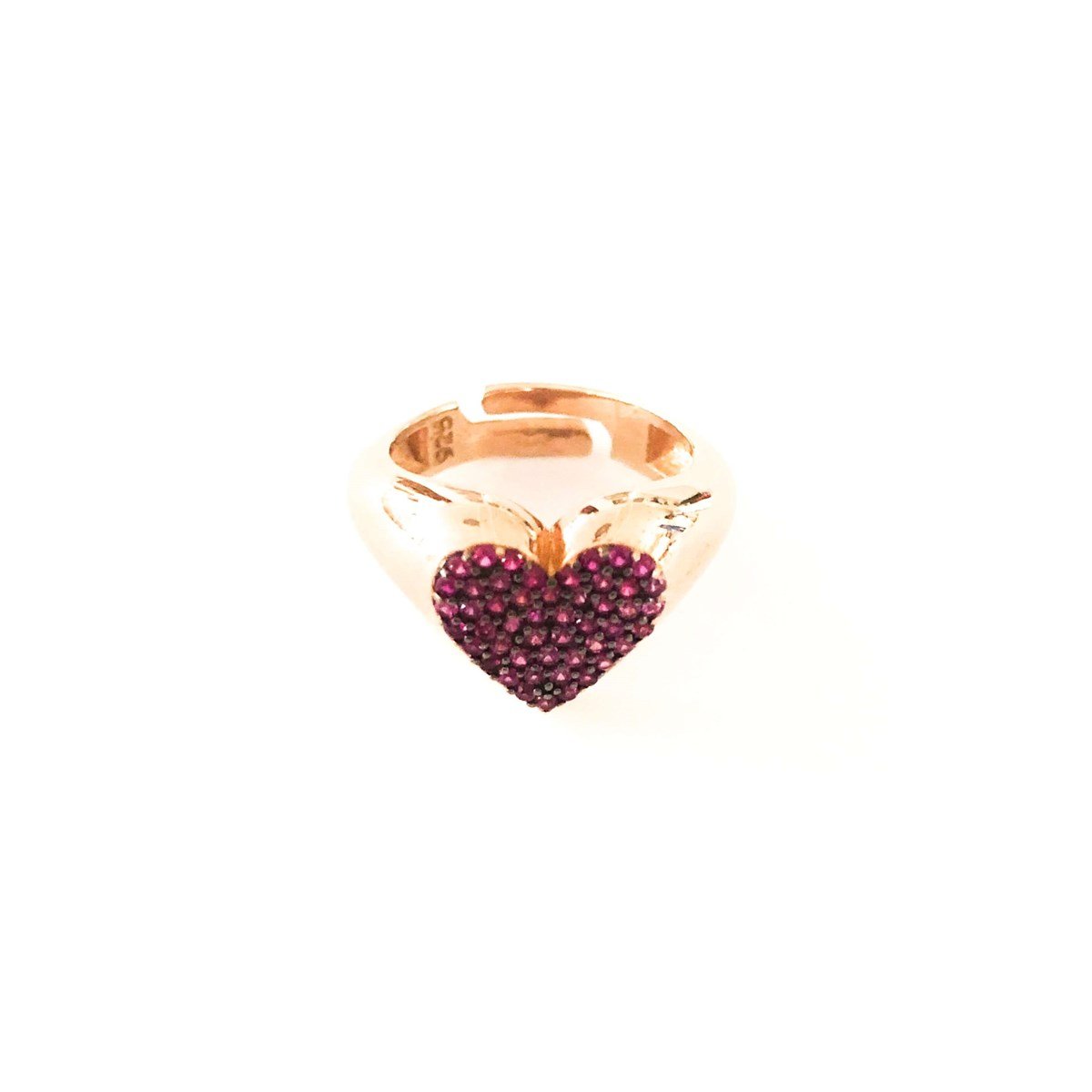 Kalp Pembe Taş Arkadan Ayarlanabilir Yüzük