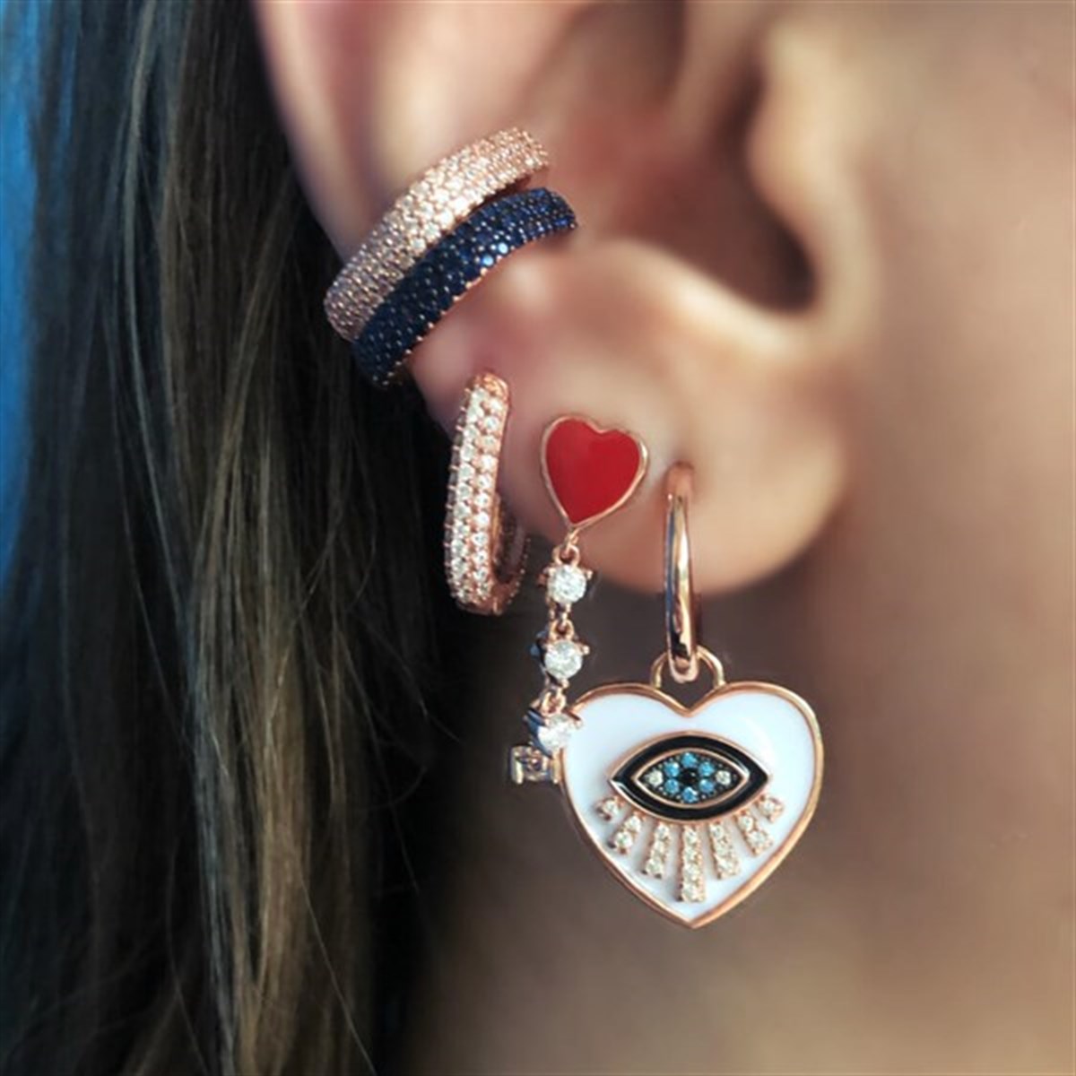 Kırmızı Mine Kalp Zincir Bağlantılı İthal Küpe1