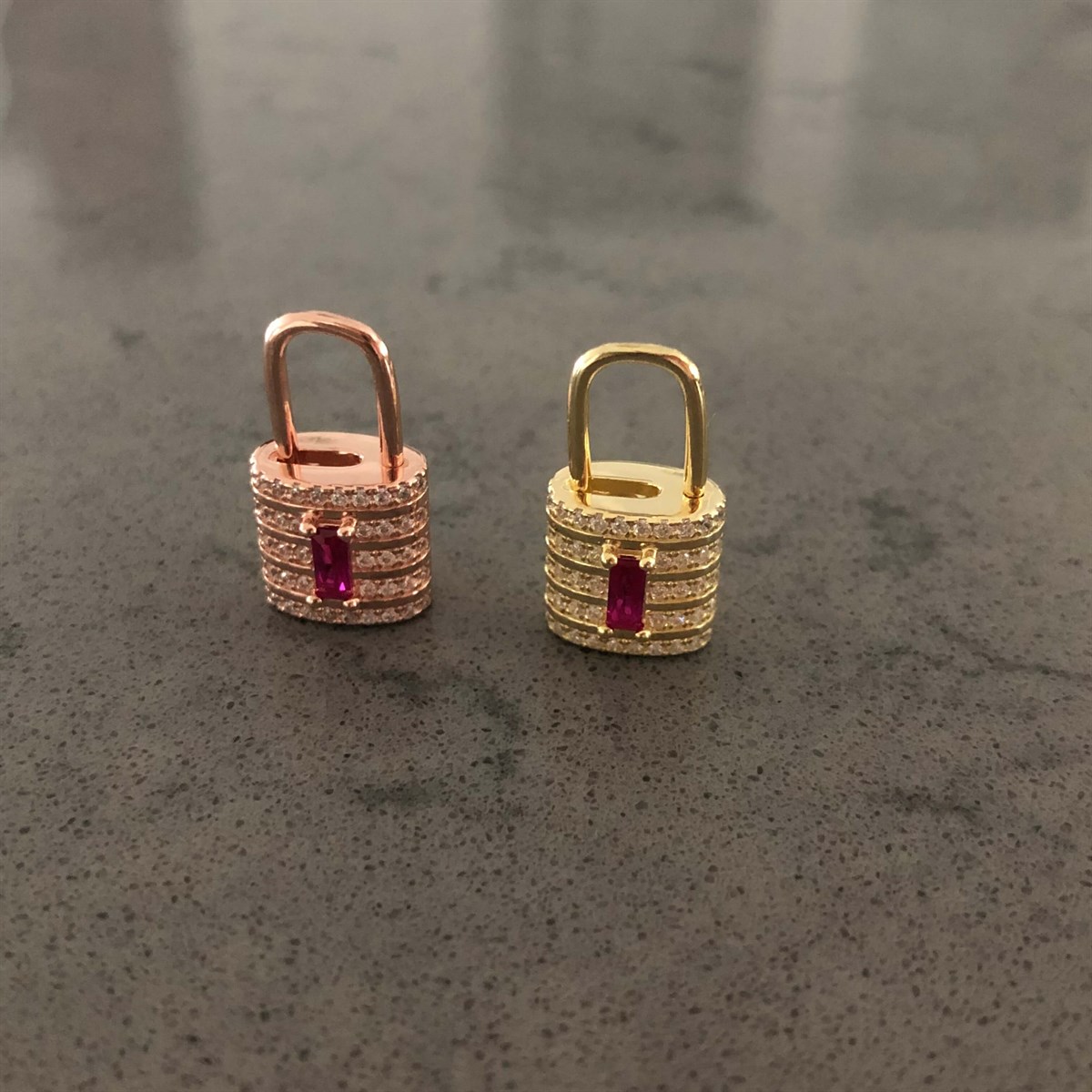Ortası Rubi Taş Kilit İthal Küpe (ZBSDORTKIK357954)