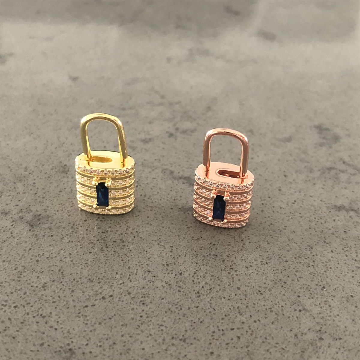 Ortası Safir Taş Kilit İthal Küpe 1