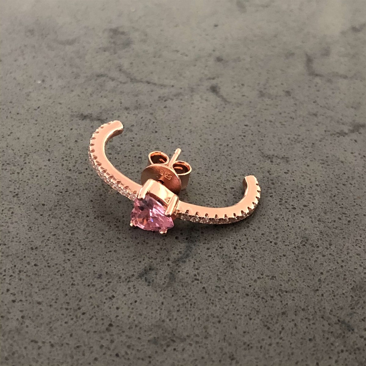 Pembe Kalp Taş Geçmeli İthal Küpe
