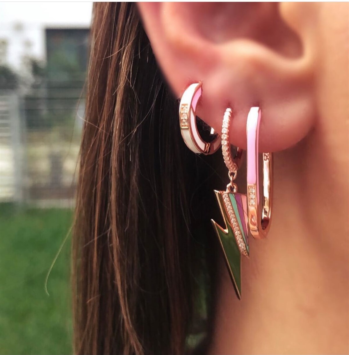 Pembe Mine Taş Detay Mini Halka İthal Küpe
