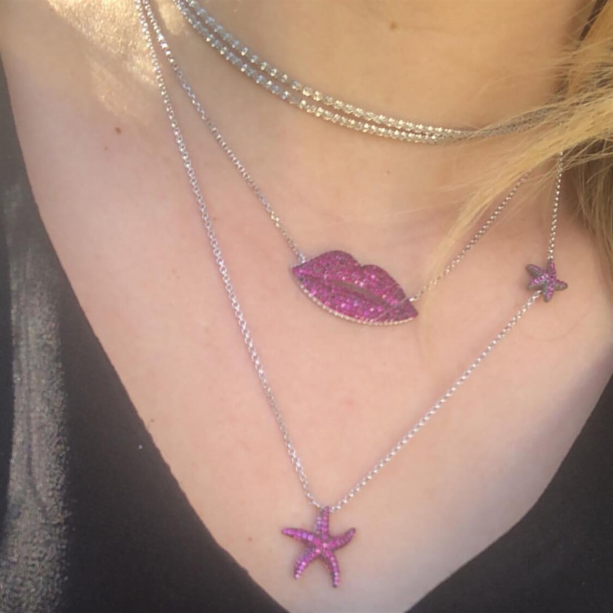 Pembe Taş Asansörlü Dudak Kolye (ZBSDPTADK77)