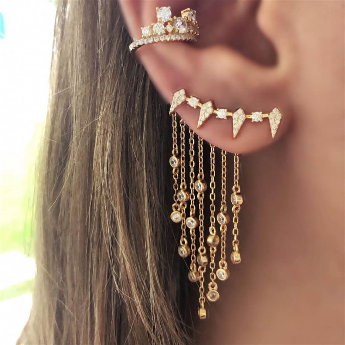 Sallantılı Taş Detay İthal Küpe