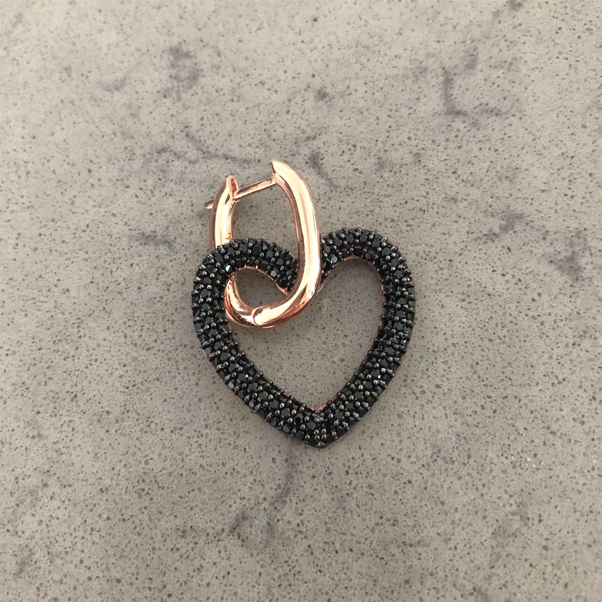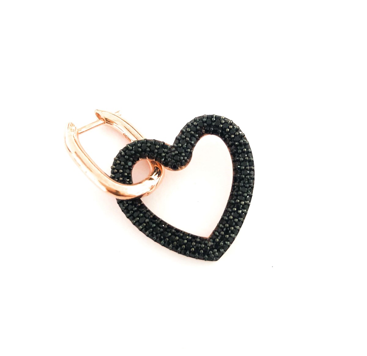 Siyah Taş Kalp Geçmeli Oval Halka Küpe
