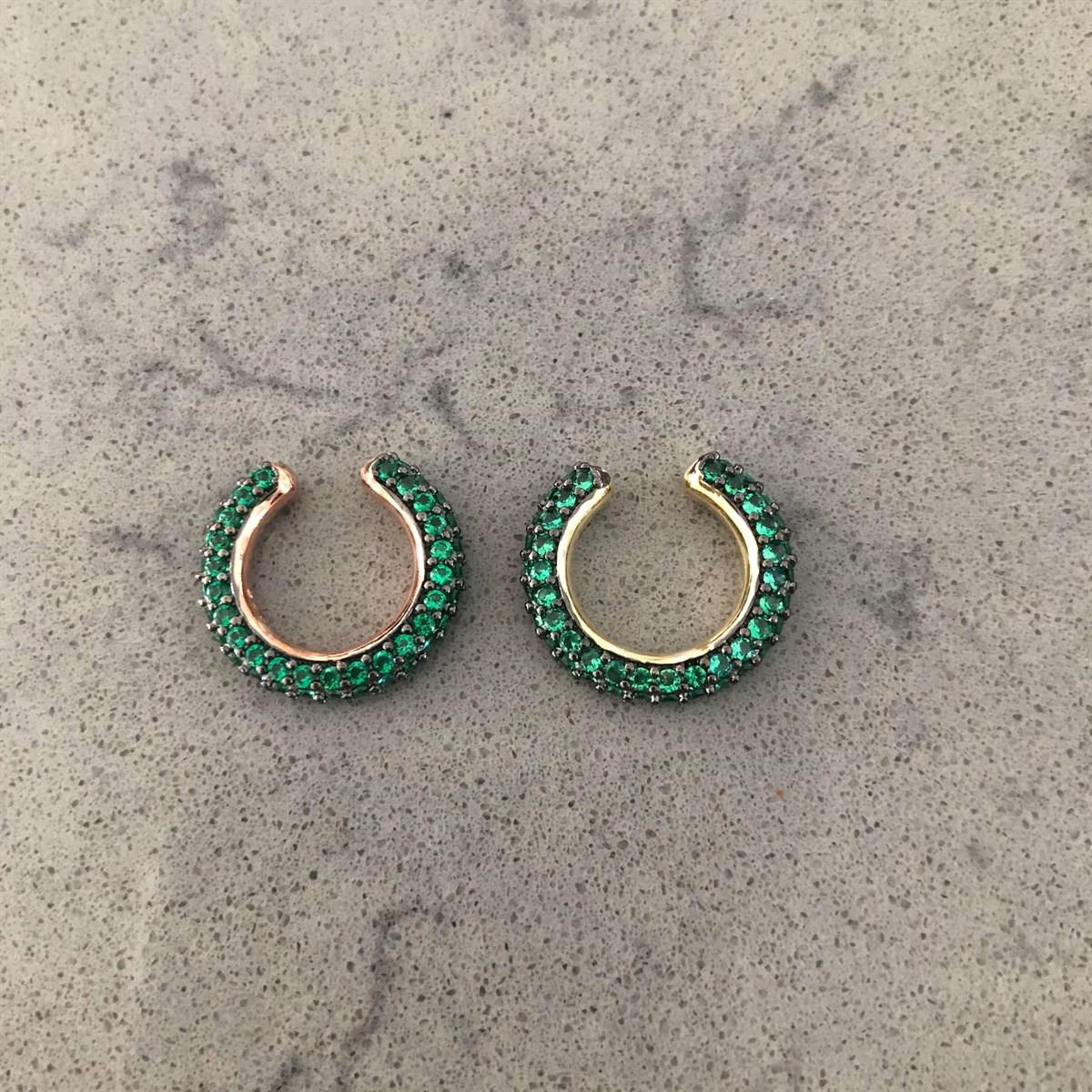 Yeşil Taşlı Kıkırdak Küpe (Rose) (ZBSDYTKK6287383)