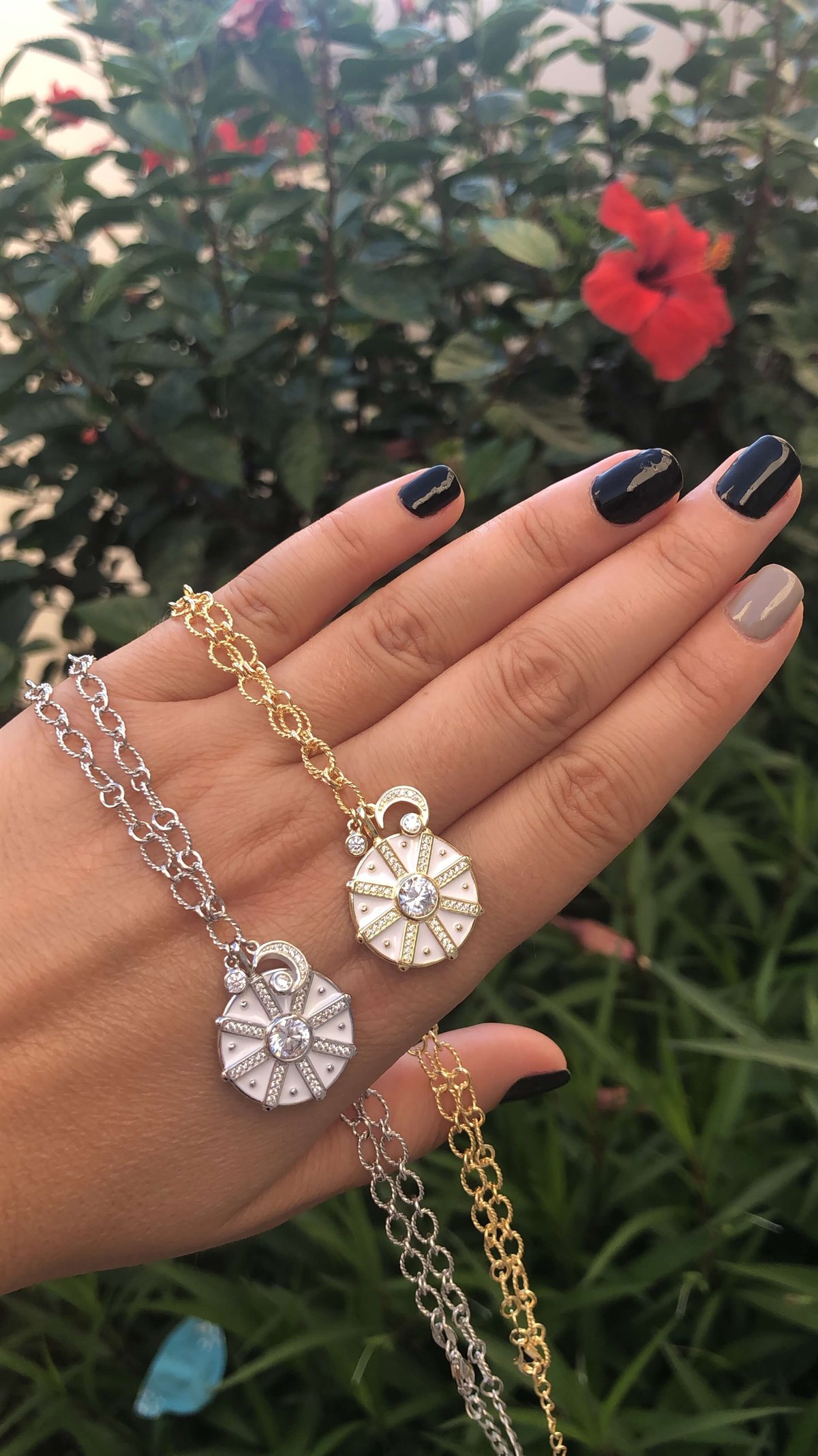 Yuvarlak Beyaz Mineli Taşlı İthal Kolye